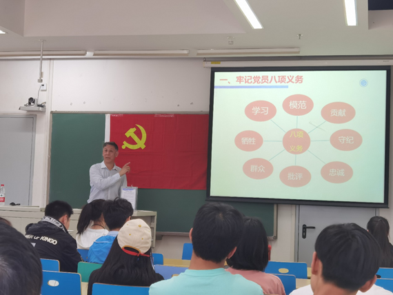 展示结束后,陈老师将党员八项义务凝练成“学习、先锋、奉献、守纪、忠诚、批评、群众、牺牲”八个词语,对于每项义务,运用丰富的理论和事例来加以解释。陈老师表示,作为入党积极分子,要将个人发展与国家重大战略需求相结合,要在对党的理论的学习过程中逐渐养成信仰力量。最后,陈老师指出:“入党,是从被动到主动的转变;是从荣誉到责任意识的转变;是从崇拜明星到寻找人生榜样的转变。作为党员,只有牢记并履行党员八项义务,提高党性修养,才能在思想上有大踏步地前进,在行动上为党更好的工作!”