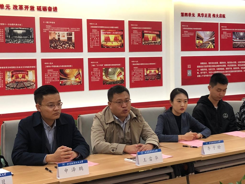 在一同观看《今日北航》宣传片后,交流座谈会正式开始,本次会议由士嘉书院本科员工党支部副书记李子晗主持,李子晗代表书院对恒大幸福家园第二社区党支部诚来相约共建表达了热烈欢迎和由衷感谢。