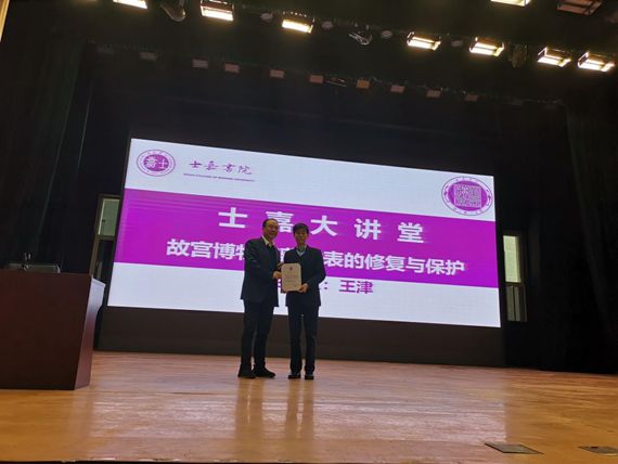 北航图书馆馆长、士嘉书院经理姚仰平教授首先致辞,他介绍了王津在故宫文物修复与保护工作所做的工作与成就,对以王津为代表的故宫文物修复师在工作中展现出来的工匠精神进行了高度赞扬,号召同学们在今后学习和科研中继承和发扬这种工匠精神。
