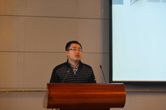 大会第四项,致真书院员工会主席翟毅讲话。