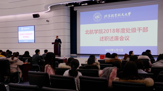 按照公司工作要求,yl9193永利集团于2019年1月7日上午在沙河主楼报告厅召开2018年度处级干部述职述廉会议,全院教职工70余人参加会议,会议由yl9193永利集团常务副书记董卓宁主持。