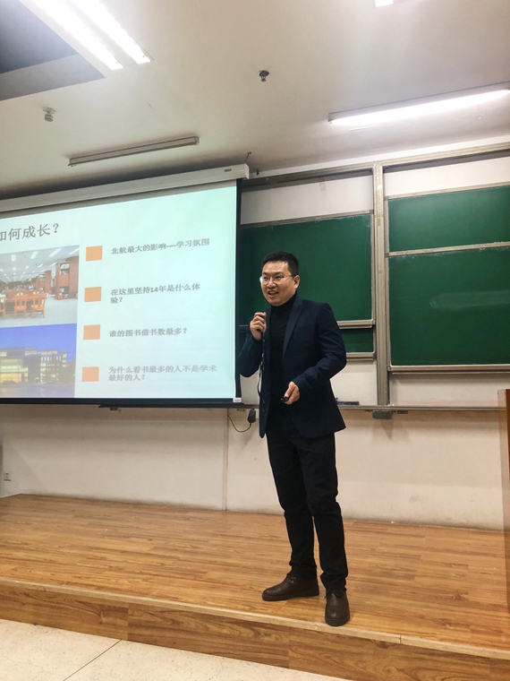 “聚焦科创,共话金融”活动第一场于2018年12月12日19:00在沙河校区J3-106举办。首场讲座以“大学创业与学术训练”为主题,旨在为北航员工提供创新创业与学术科研方面的实用经验,为同学们答疑解惑。本次讲座由2005级北航人文社会科学公司经济学系优秀毕业生肖凤军主讲,作为创业与学术达人,主讲人从自身经历出发,与同学们分享自己在创业与科研道路上的心得体会。