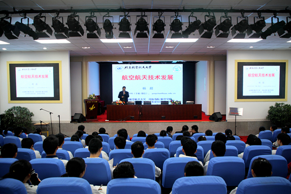 授牌仪式结束后,北京招生组冯如书院经理杨超教授为一六一中学的同学们作了一场主题为“航空航天技术发展”的主题报告。他全面介绍了人类航空航天探索历程、中国航空航天发展与现状、世界航空航天发展的未来趋势,内容生动丰富,语言幽默风趣,极大地激发了同学们对航空航天知识的热爱。之后,马进喜又从北航历史发展历程、人才培养特色、学科专业优势、国际化交流、校园生活和环境、未来就业深造等几方面介绍了北航的整体情况,着重介绍了北航实施的大类招生、大类培养、通识教育、书院育人的改革进展与教育理念。精彩报告和详细解读赢得了在场学子的阵阵掌声。