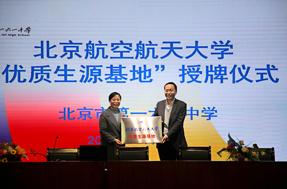 (通讯员 梁伟涛)12月10日上午,北航人才招聘处、北京招生组一行走进北京市第一六一中学,双方举行北航“优质生源基地”合作协议签约挂牌仪式,并进行“教授进中学”航空航天主题讲座。