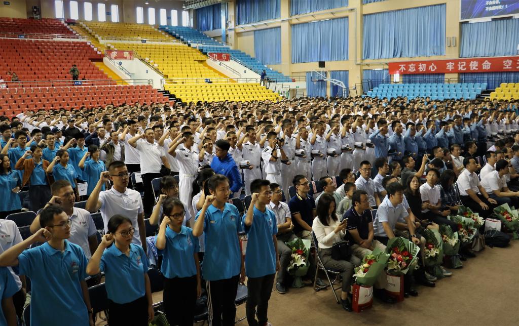 大会最后,书院全体同学在员工代表的带领下庄严宣誓:传承先烈精神,践行“胸怀、勇气、坚持”之院训,爱国、励志、求真、力行;勤学、修德、明辨、笃实;为民族伟大复兴努力学习,为人类文明进步刻苦钻研。牢记历史使命,不负北航,不负青春,不负新时代! 开学仪式结束后,冯如书院2018级全体师生在沙河校区大钟广场合影留念,近600名书院师生在雄伟庄严的沙河校区主楼前集体合影,共同在金秋时节的沙河校区留下灿烂的笑颜。