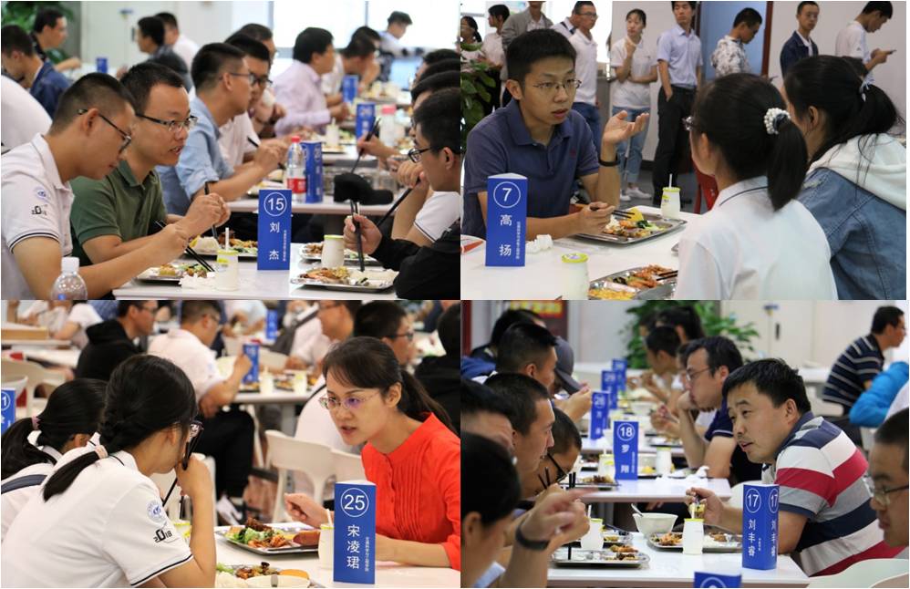 随后,师生代表共同前往沙河校区食堂,开展书院第二届师生共餐活动。师生共餐是冯如书院传统的导学活动项目,旨在通过创造温馨的师生交流环境,进一步拉近导师与员工的举例,促进师生平等交流,着力解决大师不在员工身边的问题。“未来专业怎么选?大学课程难不难?想做科技实践该找谁?”面对新生同学们提出的问题,导师们在宽松、愉快的氛围中给同学们一一解答,与同学们共同交流探讨。师生共餐,让员工感受到了老师的和蔼可亲,也让导师们明确了员工的需求,为书院2018级导师工作的顺利开展奠定了良好基础。