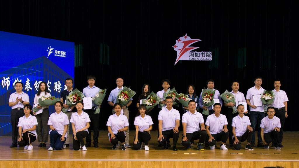 之后,由董卓宁老师宣读冯如书院2017级优秀导师名单并为优秀导师代表颁发证书,来自导师导学小组的同学为老师们献花。范鹰老师和齐海涛老师为书院2018级新聘任导师代表颁发聘书,书院2018级员工代表为导师们献花。冯如书院2018年共聘任导师72人,来自对应10个专业公司,其中高级职称人数56人,比例达到77.78%,师生比达1:7。