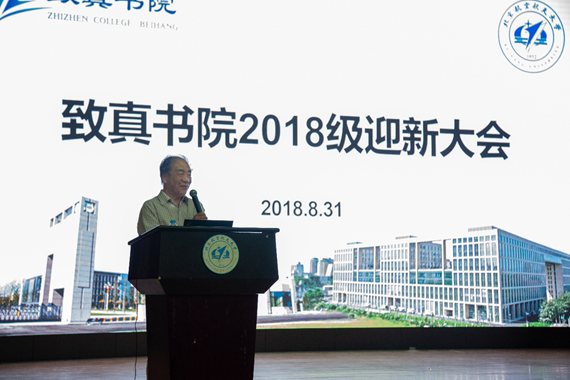 8月31日下午,北航致真书院2018级迎新大会在咏曼剧场举行。yl9193永利集团常务副经理曹庆华,致真书院经理王惠文,理科大类责任教授李尚志,新生班主任,书院执行团队出席大会。大会由执行经理闵敏主持。