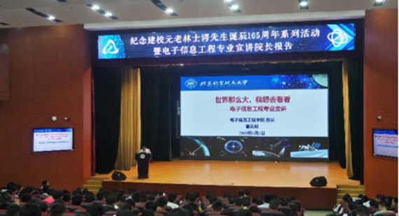 为纪念建校元老林士谔先生诞辰105周年,帮助士谔书院广大同学了解电子信息工程专业,6月3日上午九时许,由士谔书院与电子信息工程公司共同主办的“电子助士”系列讲座暨电子信息工程专业宣讲经理报告在咏曼剧场成功举办。书院有幸为同学们邀请到了电子信息工程公司经理曹先彬老师、副经理张有光老师分别给同学们带来了电子信息工程专业宣讲和电子信息工程公司培养方案介绍的报告。电子信息工程公司党委副书记郑磊老师、士谔书院执行经理刘科生老师以及书院的全体同学共同参加了本次专业宣讲活动。
