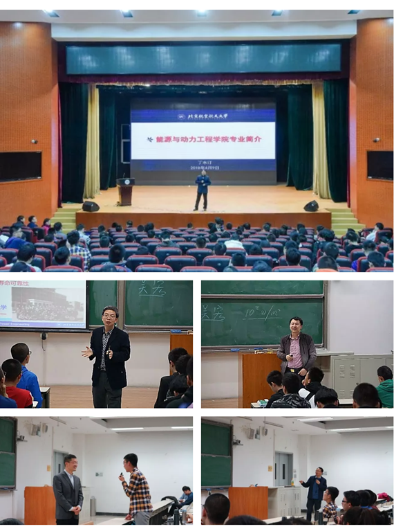 宣讲周前三天晚上,动力公司经理丁水汀教授携航空推进系主任石多奇教授、流体机械系主任柳阳威副教授、工程热物理系主任吴宏教授、热能工程系主任额日其太教授组成公司专业宣讲团,开展了从公司专业宏观概述到细分专业详细介绍的系统性专业宣讲和人才培养体系介绍。丁水汀经理从航空发动机的发展历程讲起,详细讲述了航空发动机是什么、难在哪,以及航空发动机的国家重大战略需求,并结合公司4个细分专业的研究方向和团队力量,介绍了公司学科优势、科研基地、科研大奖、国际交流和以职业素养、专业能力、通用能力为核心的国家试点公司人才培养目标体系,以及基于“选、育、评”全程化的本科人才能力结构塑造总思路。4个系主任随后详细宣讲了本专业的历史、发展历程、研究方向、团队力量、科研基地、员工就业、国际交流等方面的情况。