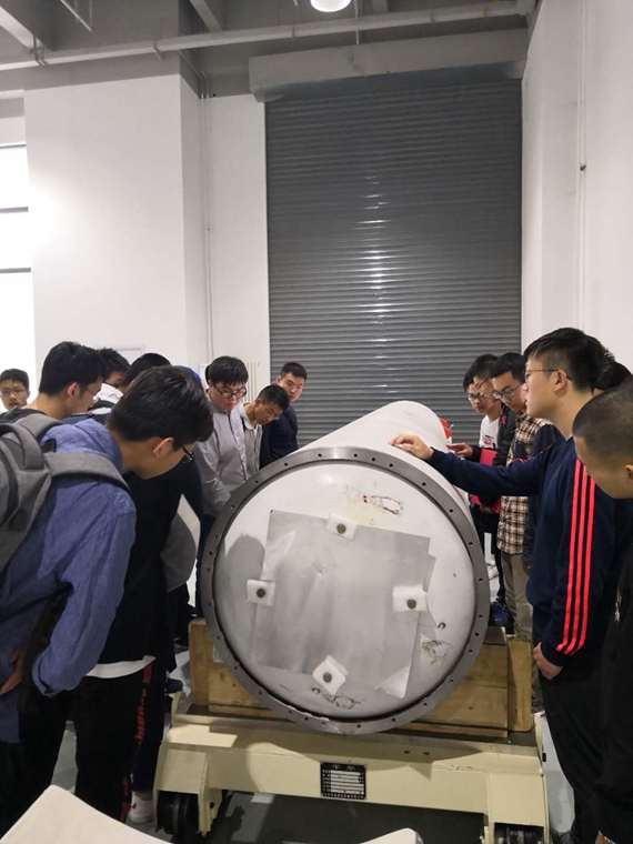 接下来,同学们去了零壹空间的实验基地,在这里,我们看到了一台已经装好的固体火箭发动机,在听完讲解员的讲解之后,我们来到一个小会议室,听讲解员介绍了有关火箭的一些基本知识。比如:一些以前的著名火箭,现在火箭的发展方向:大推力与小成本,火箭的价格与成本,火箭的历史与未来:用火箭载人飞行(代替民航),零壹空间所做的一些火箭系列等等。