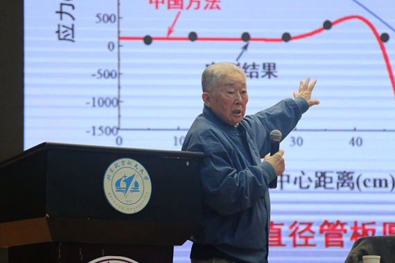 他提到,自己做研究时一直秉承着两个原则:其一是一定要符合国家的需求;其二是一定要有创新。他将祖国的需求放在第一位,曾经放弃国外博士论文答辩立即回国,参与组建清华大学的工程力学系。为了让创新的氛围更加浓厚,他在系里面组建讨论班。如今,这个讨论班已经从最开始十几位教师参与的小型研讨会发展成了国际化的高端论坛。接着,黄院士还向同学们讲述了宏微观结合建立纳米管拉伸断裂理论、基于微观机制的应变梯度理论、可伸展电子元件的力学等近年来取得的代表性科研成果。