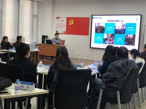 学业总导师曹晋滨教授向大家总结了2017年导学活动的开展情况。据统计,秋季学期书院共举办导学活动204场,其中线上80场,线下124场;导学小组最多活动次数为15次,累计时长超过40小时。数据表明,员工对导学活动整体满意度高达90%以上,对导师工作质量及辅导水平给予了充分肯定。据员工意见反馈结果显示,98.8%员工认为导学活动对学业成绩的提高有效,99.4%员工认为导学活动对未来专业选择有帮助。在导学活动中,大家更多倾向于在学术引导、思想引领、学业帮扶方面得到帮助。曹晋滨教授还对完善书院导师制建设提出了建议和要求。他指出,导学活动要符合导学大纲的基本要求,学业导师应充分发挥自身优势及特色,依托科研提升计划,结合“冯如杯”等竞赛,打造精品化导学活动。