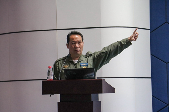 徐勇凌大校,空军功勋试飞员,中国航空学会理事,中国军事文化研究会网络研究中心高级顾问,歼-10飞机首席试飞员,国家科学进步奖特等奖获得者,刘亚楼军事理论奖获得者。更让同学们感到亲切的是徐勇凌大校还是北航优秀员工,并荣获第六届“感动北航”年度人物。