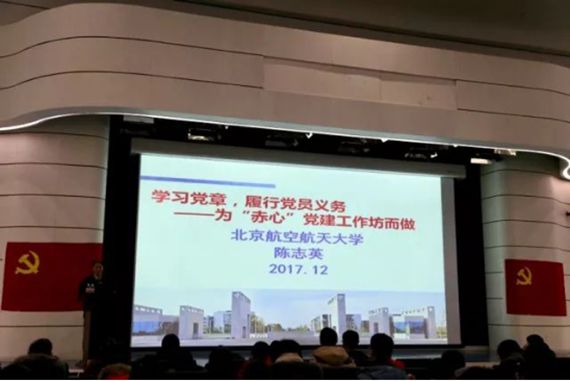 (通讯员 赵亮)2017年12月10日下午,北航赤心党建工作坊在国家实验室多功能厅举行了第四次必修党课。本次党课邀请到了陈志英老师,就“学习党章,履行党员义务”主题进行宣讲。