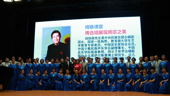2017年11月11日晚,由员工处和冯如书院共同主办的“用合唱展现民歌之美”博雅课堂在yl9193永利集团沙河校区咏曼剧场顺利举行。本期博雅课堂邀请到了中央民族乐团团长、首席指挥阎伯政教授以及他所带领的北航教工合唱团和多彩中国文化交流艺术团合唱团,由陈志英教授主持。