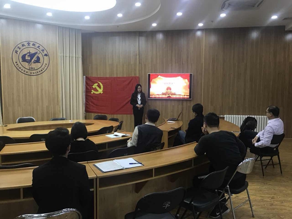 入党积极分子王诗琪和焦贤锋同志依次开始答辩,他们通过PPT展示的方式向党组织汇报了近一年的学习情况、社会工作情况,陈述了自己的入党动机以及对党的认识,最后分别选取了一则时事热点展开了分析,充分展示了他们良好的精神风貌和向党靠拢的意愿。