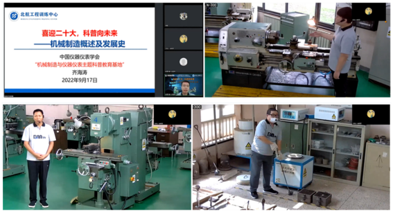 (通讯员 李志珑)9月17日上午,工程训练中心“机械制造与仪器仪表主题”科普教育基地紧抓“喜迎二十大,科普向未来”的契机,以“机械加工设备发展进程”为主题,开展科普基地第二期活动——线上科普直播。本次直播采用“理论讲解+现场实操”相结合的模式进行,特邀科普基地科普专家齐海涛、史成坤、李亚鹏、杨俊海以及刘小亮现场展示。