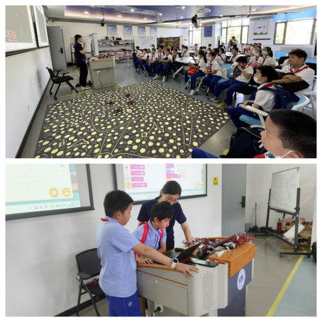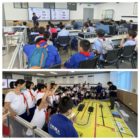 在机器人创新实验室,科普老师带领孩子们走进机器人的世界,把机器人形象化为人,生动的讲解了机器人的感知能力(人眼)、规划能力(人脑)、动作能力及协同能力(四肢),以及机器人的工作原理,通过全地形机器人行走演示,激发了小员工探索机器人的兴趣。