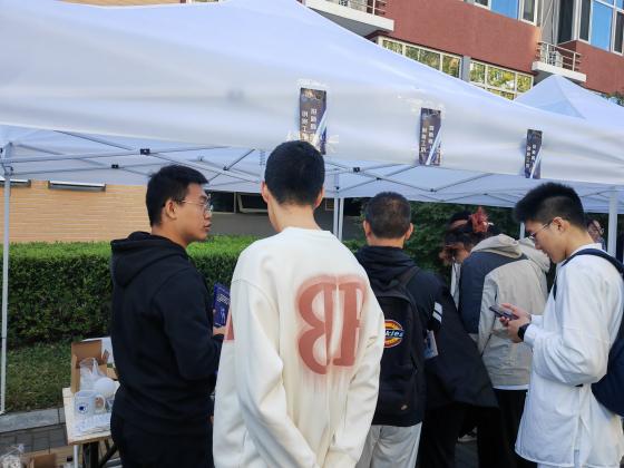 社团招新活动从上午十点一直进行到下午三点,凭借独特的社团游戏和精美的文创礼品引起了同学们的广泛关注。烧脑的二十四点游戏让同学们驻足深思,充满乐趣的“谁是卧底”游戏使摊位上爆笑连连,欢乐的气氛让同学们纷纷停下了脚步,跃跃欲试。