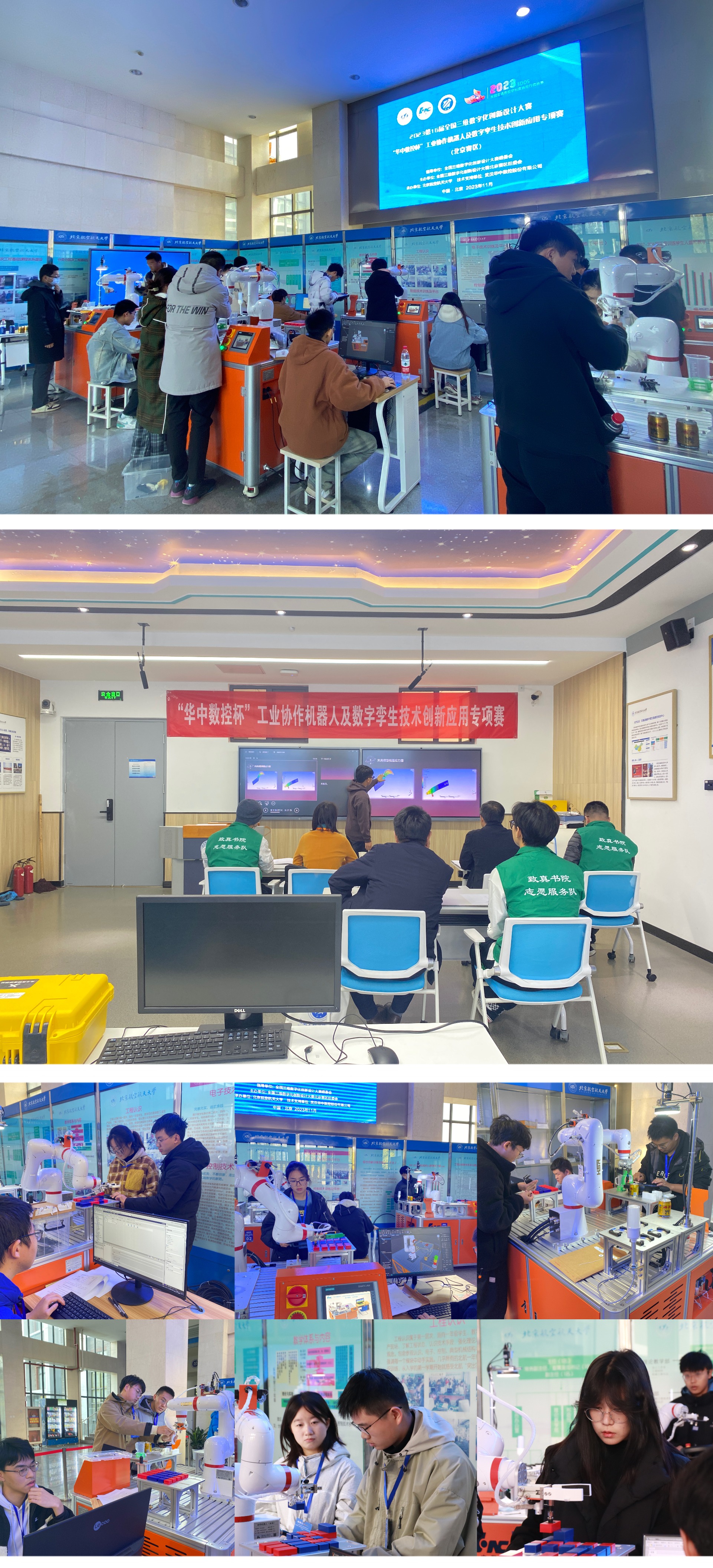 为了打造一个智能制造工业机器人创新领域的高校、行业、企业之间交流平台,实现多方在教育、人才、科研等各个方向的合作,并实现理论教学、设计创新和工程应用的有机融合,推动智能制造人才培养工作,加强老员工创新意识和动手实践能力,提升人才培养质量,为国家智能制造产业发展提供高质量的人才支撑。全国组委会决定举办2023第16届全国三维数字化创新设计大赛“华中数控杯”工业协作机器人及数字孪生技术创新应用专项赛北京赛区选拔赛。来自清华、北航、北理工、北工大等14所高校参与本次专项赛,26支代表队共计100余名师生参赛。大赛由武汉华中数控股份有限公司提供技术支持。