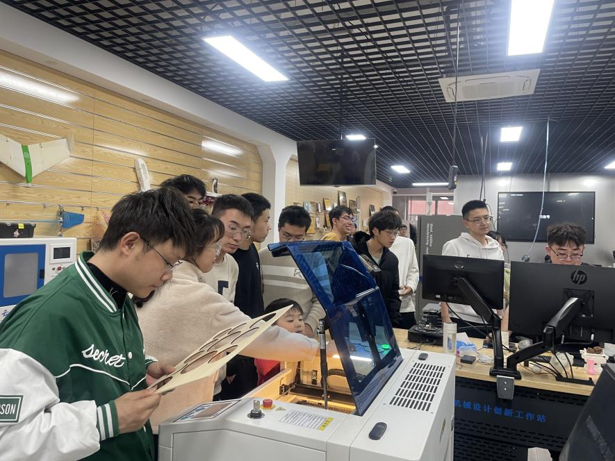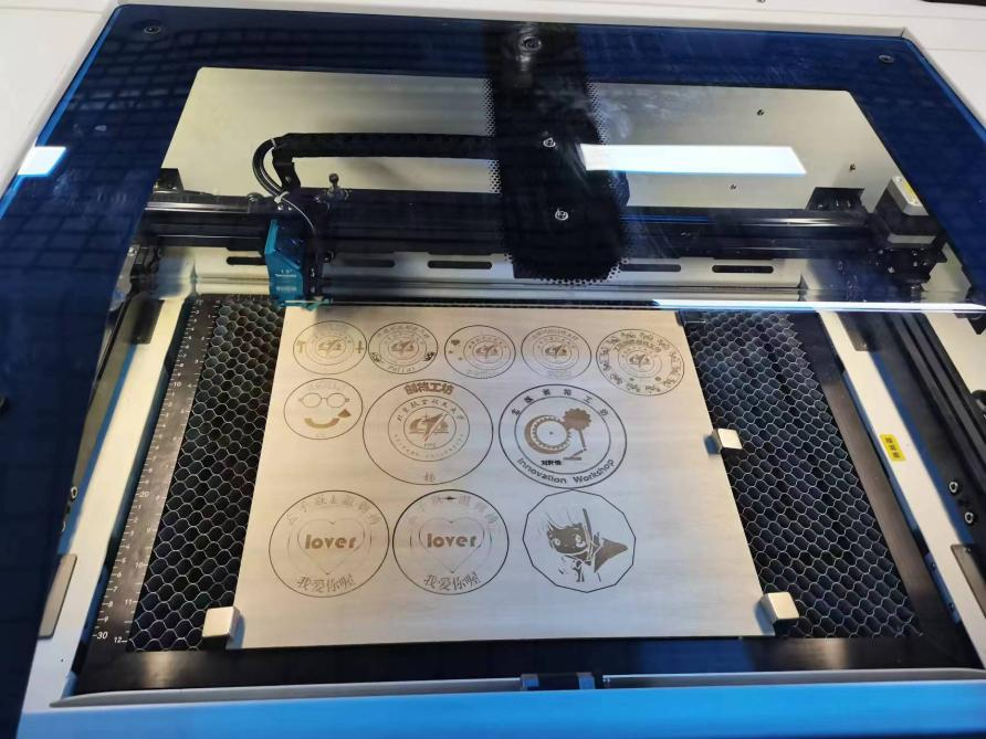 创作完成后,指导老师示范用激光切割制作产品的全过程,让同学们对激光切割有了直观生动的认识。大家电脑上绘制的图案在激光切割机的“魔法”下逐渐呈现出完整的形态,每位同学的创意徽章都从设计图纸转变成手中实物。