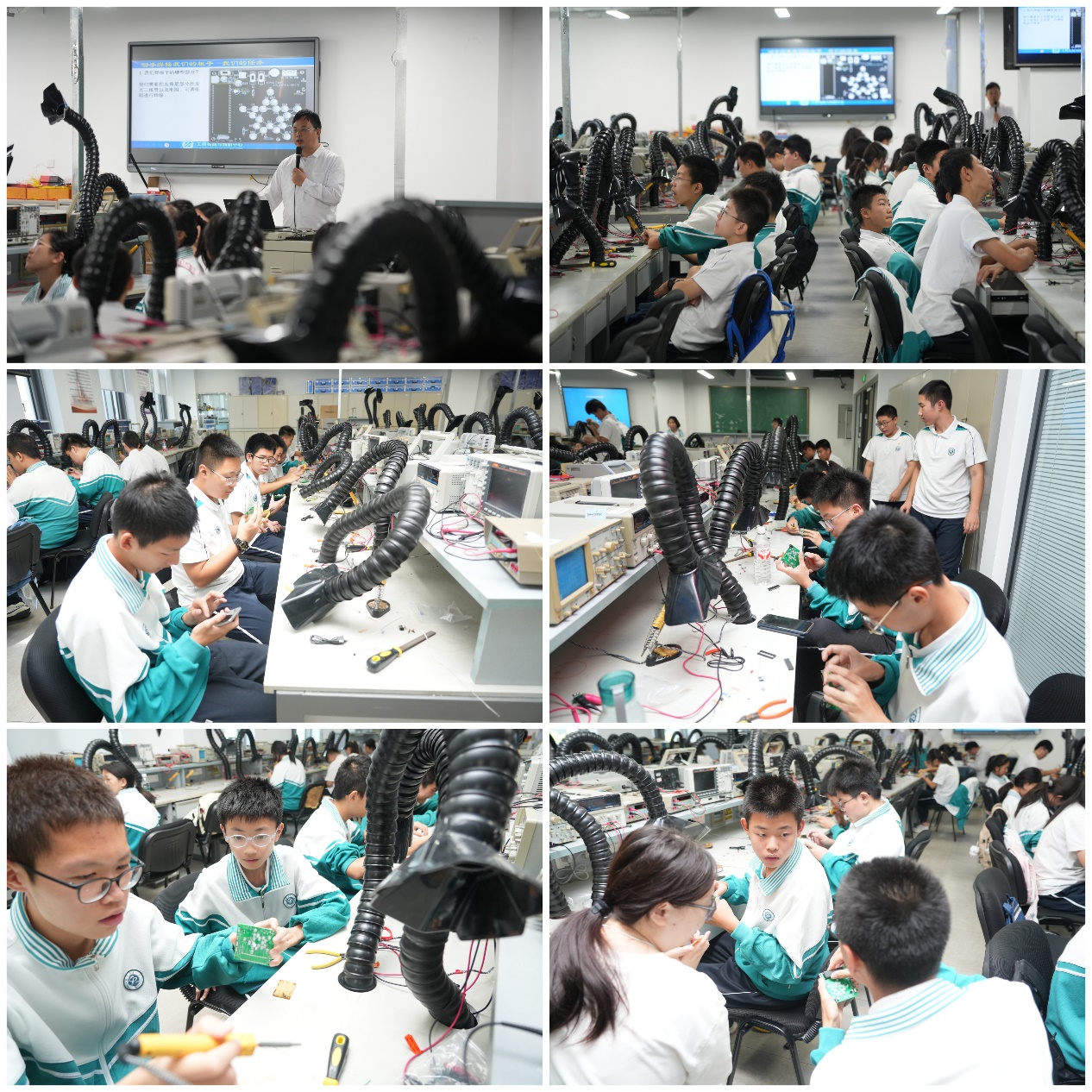 在电子工程技术训练实训室中,昌平一中的同学们迎来了一场“电的旅程”。从基础电路知识到PCB设计入门,从传统焊接工艺到前沿的液态金属打印技术,课程内容丰富充实。在教师指导下,同学们动手设计焊接元器件,最终成功点亮属于自己的“智慧灯塔”。