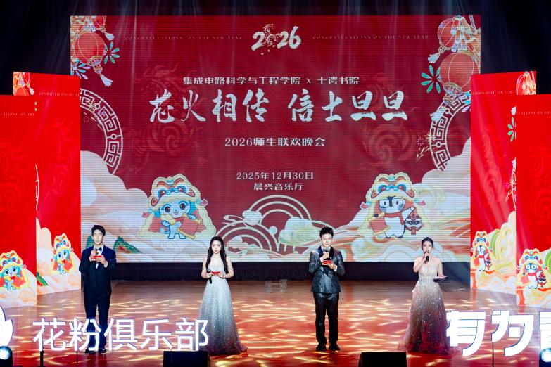(通讯员 梁语萱 孙雅轩)12月30日晚,集成电路公司与士谔书院“芯火相传 信士旦旦”2026年元旦师生联欢晚会暨“璀璨之芯”“士谔志士”颁奖典礼在晨兴音乐厅举行。整场活动集表彰先进与文艺盛宴于一体,既彰显了两院学子的卓越风采,也凝聚了师生同心的深厚情谊,为即将到来的 2026 年奏响了昂扬序曲。