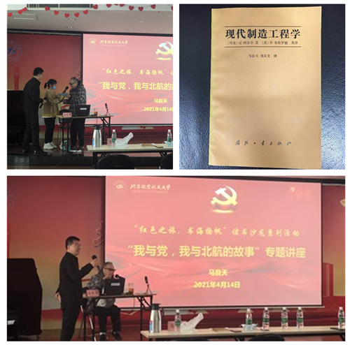 2021年4月14日上午,公司工会邀请工程训练中心现年92岁的离休老党员、长篇传记文学《时传祥》一书的作者、曾与同事用创收为公司建起一栋金属工艺教学楼的马自天老先生,为全院教职工带来“我与党,我与北航的故事”专题讲座,和大家分享“我与党一起成长,为吾校育人树才”的精彩人生。