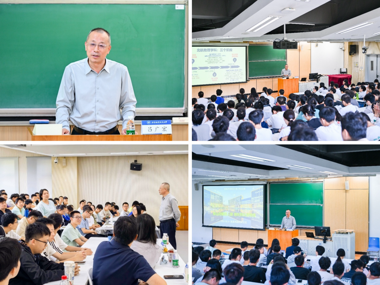 理科大类开展物理公司专业宣讲。物理公司经理吕广宏老师主讲《青山尽解招人醉 得失到头皆物理》经理讲坛,从学科历史沿革、学科定位与发展现状、物理教学与人才培养、学科未来展望四个方面,全面系统地介绍了物理公司的基本情况和培养特色,展现了北航物理学科的优势实力,体现了“尚德务实、求真拓新、追求卓越、甘于奉献”的公司精神传承。