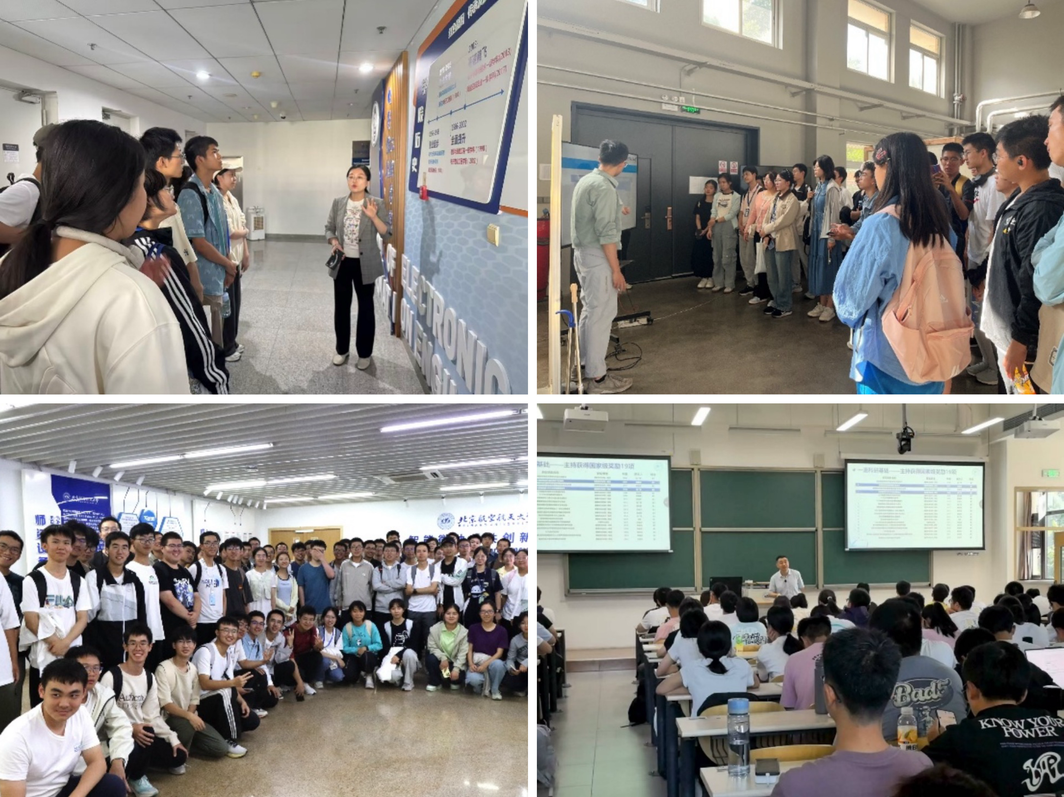 航空航天类的同学们在此次专业行活动中走访各公司实验室并聆听专题讲座,亲身体验航空航天的魅力。材料科学与工程公司赵新青老师以记忆金属产生记忆效应的机制及其具体应用为实例对公司研究内容进行讲解,随后的实验室参观将抽象的理论与前沿的科研实践紧密结合,使同学们对材料学科的前沿发展现状有了深刻的理解。能源与动力工程公司副经理额日其太老师从培养目标、培养方案、公司优势、研究方向等多个角度系统介绍了能源与动力工程公司飞行器动力工程、能源与动力工程、空天智能电推进技术专业的具体情况。航空科学与工程公司郭昊老师系统介绍了公司整体情况,围绕创建历史与发展历程展开阐述,全面展示了公司在学科方向、重大贡献、人才培养等方面的优势,帮助同学们直观领略公司鲜明的学科特色。机械工程及自动化公司王巍老师从硬件、软件角度详细介绍了机器人的组成结构及功能特点,并深入剖析了机器人系统技术体系的核心,引导同学们思考理解机器人技术的系统性特点,为未来的学习和研究奠定坚实基础。生物与医学工程公司孙联文老师带来《北航生物医学工程》主题报告,展示了北航生物医学工程专业从零起步,历经萌芽阶段,最终跃升至全国领先并荣获A+学科认证的辉煌历程,激励同学们积极投身生医领域,共同探索。交通科学与工程公司崔志勇老师做《空地一体 智慧交通》主题报告,详细介绍了交通公司各专业的特点特色和学科优势,随后的实验室参观使同学们更加具体感受到了交通公司的专业特点。可靠性与系统工程公司李晓阳老师、陈世舜博士以“可靠的内涵”为切入点,循序渐进地揭示了可靠性系统工程的理论内涵与应用价值。通过多样的航空航天实例展示,使同学们切实感受到可靠性研究的前沿探索与现实意义,引导大家从工程、生命、文学、艺术及社会等多维视角理解可靠性的普适性与广阔前景。宇航公司李家军老师从人类飞天探索引入宇航,带领同学们穿越时空长廊,回顾了从万户飞天到神舟巡天的壮阔征程,生动讲述了北航宇航公司如何秉承空天报国精神,为我国航天事业输送了大批领军人才。