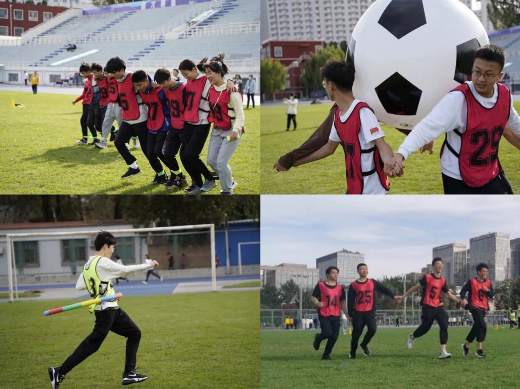 书院为同学们准备了“五人六足”、“背夹球跑”、“滚雪球”、“螃蟹赛跑”、“同舟共济”共五个趣味运动项目,每个项目各有四支队伍参与角逐。绿茵场上胜负并不重要,在趣味运动中同学们收获的是满满的欢乐。