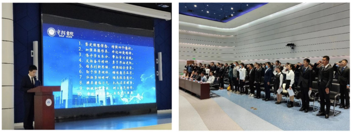 接着,守锷书院半脱产辅导员方阳宣读了守锷书院员工干部倡议书。在分团委组织部部长何忧的带领下,全体员工干部起立做庄严宣誓。