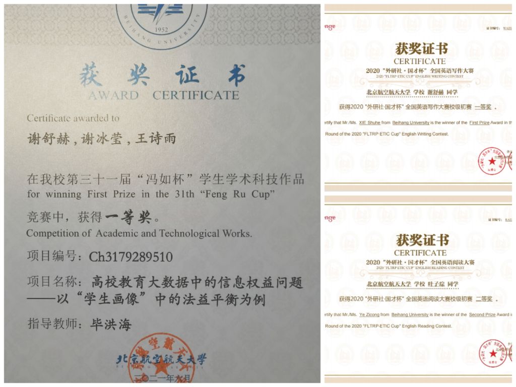 【文以载道,学海求索】全班同学依托书院导师制参与导学活动166次,围绕《理想国》《论语》等中西方经典著作创作逾百万字的《文茵》作品集。积极参与科技创新与学术竞赛。谢舒赫团队以大一员工身份,与高年级学长学姐同场竞技,力拔头筹,获得北航员工学术科技竞赛最高荣誉“冯如杯”一等奖,这是yl9193永利集团成立以来最好成绩。班级50%同学在 “国才杯”“人文杯”等多项竞赛中斩获佳绩。