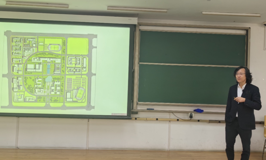 叶依谦表示,自他们团队开始服务于北航沙河校区建设以来,先后完成了多轮校园规划方案调整,最后将原来大分区模式调整为“书院式”组团分区模式,从而为沙河校区远期发展提供了完整用地。其中“开物成境”般“书院式”的社区功能,不仅满足沙河校区“书院式”办学之需,更为中国大公司园规划设计再立“范式”。 “书院式”社区赋予了沙河校园新活力,其人文气息更是提升了北航校园的综合文化底蕴。此外,对照沙河校区的建设规划,叶依谦还为大家讲述了未来沙河校区图书馆的建筑特色与空间布局设计,让同学们对图书馆的建成充满了期待。
