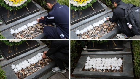 到达陵园后,同学们分立两列,肃穆站立于屠老墓前。主持人谢晟宣布悼念活动开始。首先是员工代表许家铜为大家讲述屠老的生平事迹。许家铜同学从屠老波澜壮阔的一生讲起,回顾了屠老为国家做出的巨大贡献,又结合自己观看《百年守锷》话剧和参与星源流明实践队的经历,激励同学们学习屠老的高贵精神品质,传承守锷精神,奋发努力,空天报国。随后,同学们为屠老献上花篮,全体人员三鞠躬,为屠老集体默哀三分钟。