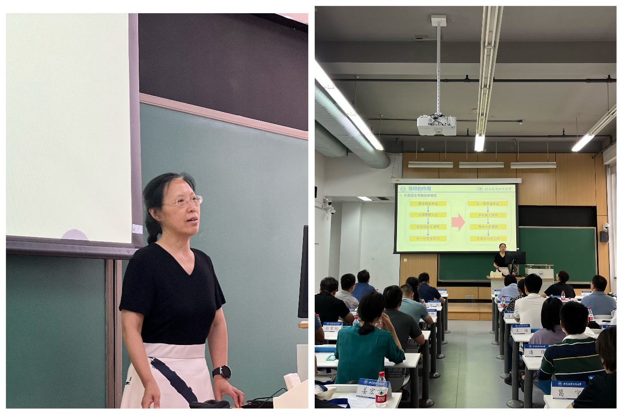 学业总导师王少萍老师对与会老师进行了导师、班主任工作培训。首先介绍了秋季学期导师制工作的基本情况,包含导师选聘原则、导师在大类培养招生书院培养模式的作用、导师体系构架、导师制度、导师职责、导师工作内涵和目标、导师工作内容及导师职责要求等内容;其次介绍了班主任工作重要性、岗位职责、工作原则、工作制度等内容。她强调了新学期对导师、班主任的工作期望,要“以员工为本、因材施教”,希望导师班主任们能够帮助大一的员工从高中趋同的人生模式转变到大学自主个人的人生模式,为员工做出示范,做好引领者,要尊重员工的个性和思想,寓教于乐,引导员工热爱生活、选择适合自己的专业,让员工真正地感受到“大师在身边”。