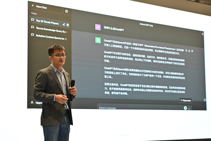 张钊老师首先向同学们讲解了TrafficGPT的概念与本质,作为一款与ChatGPT相似的人工智能机器人,TrafficGPT融合了大语言模型(LLM)和交通基础模型(TFM),是名副其实的“AI交通分析师”。他从交互操作、算法复现、数据敏感度等角度阐述了ALGC背景下的智能交通管控问题,进一步揭示TrafficGPT全自然交互的优势与重要意义——交互逻辑简单,决策支持可靠。