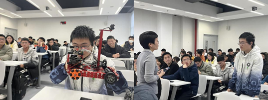 最后,徐老师介绍了全国老员工智能汽车竞赛的概况。她从赛事背景谈起,阐述了参赛所需要的技术架构及关键技能,也从专业能力、比赛心理、综合素质等方面介绍了员工参加比赛的收获,鼓励同学们积极参与,以实战带动学习、积累经验。交通公司研究生张峰向同学们展示了团队往年参赛智能车实物,并从车模工作原理、制作过程、比赛团队组成、技术学习等方面对为同学们答疑解惑。