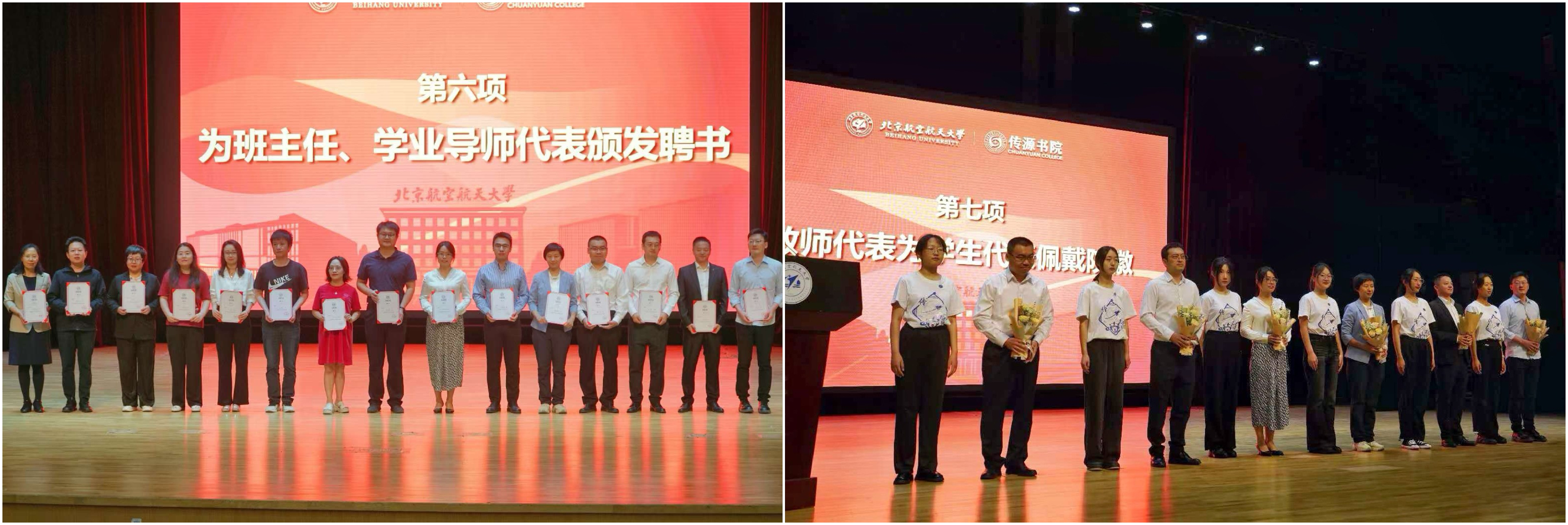 仪式上,王少萍教授为传源书院2024级班主任、导师代表颁发聘书。教师代表接受新生代表赠送的鲜花,并为新生们佩戴书院院徽。