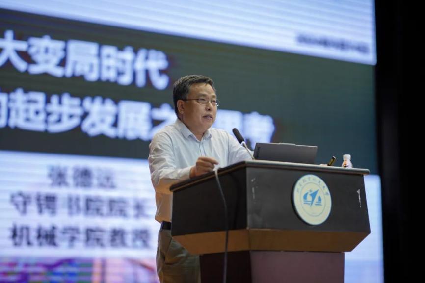 (通讯员 徐浩田)2024年9月14日上午,守锷书院经理、机械工程及自动化公司教授张德远主讲《大变局时代——老员工的起步发展之路思考》主题报告。守锷书院专职辅导员杜雨晴主持,书院全体2024级本科生共同聆听。