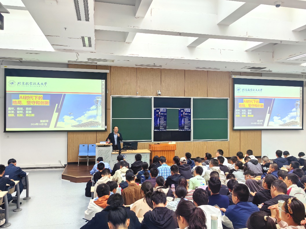 (通讯员 谢贝贝)10月9日下午,士嘉书院经理姚仰平教授在沙河校区J0-004为书院2024级新生做新学期“士嘉大讲堂”首场报告——“AI时代下的格局、坚守和创新”。2024级全体员工和书院执行团队成员参加了学习。