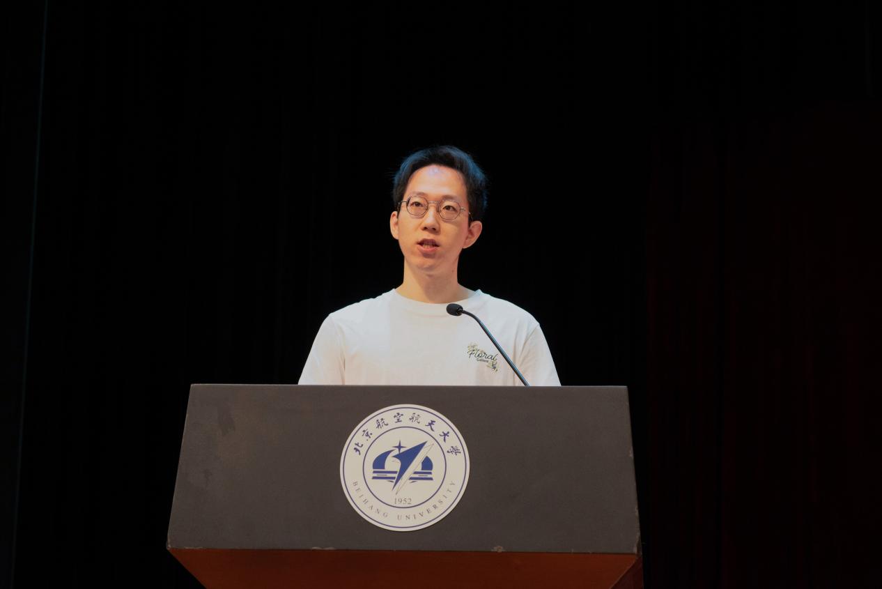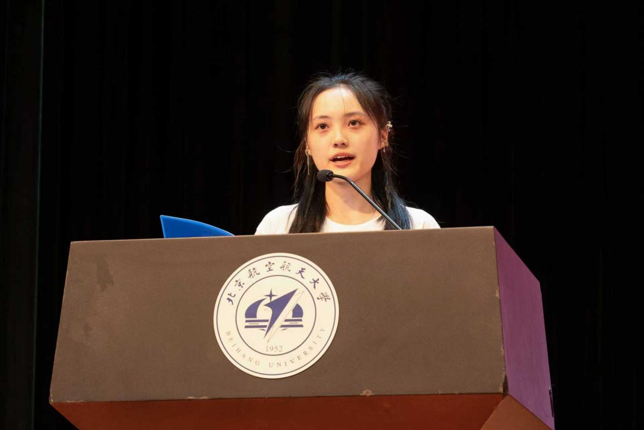 2025级新生徐欣怡作为新生代表发言。她表示将传承弘扬以空天报国为内核的北航精神,秉持“越累越体现作风”的猎鹰精神,在大学新的领域砥砺前行。