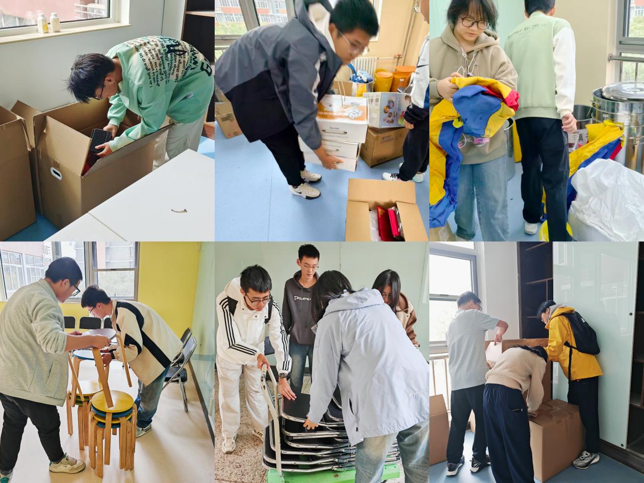 活动过程中,同学们分工协作,依照计划完成物资的转运与清点任务。有的同学主动承担重物搬运工作;有的同学在相应场地负责清点书架、桌椅等物资并报备登记。致真“星空间”的初步布置已顺利完成,后续将进一步完善空间内的设施配置与环境布置。