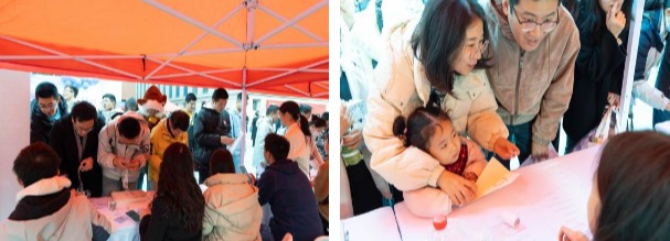 “航续华章”主题摊位同样亮点纷呈,精准呼应北航“空天特色”。“‘纸’向蓝天”纸飞机折叠活动中,参与者充分发挥创意,折出形态各异的纸飞机,当承载着航天愿景的纸飞机在空中翱翔时,不仅展现了北航学子的动手能力,更成为北航人“空天情怀”的生动写照;“笔墨留声”寄语环节更添温情,师生与员工在便利贴上写下对公司的祝福与期许,这些寄语将由书院统一封存,待 2026 年校庆时启封,让这份对北航的深情实现“跨年度传承”。