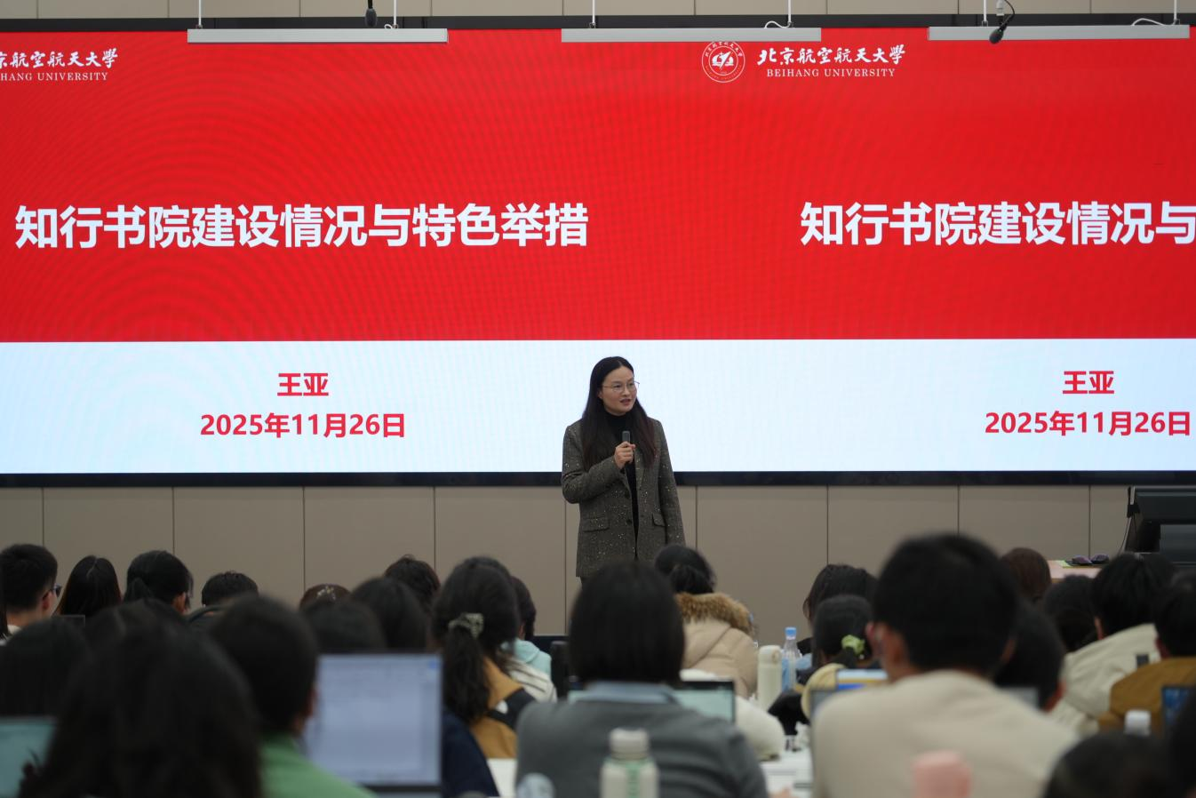 yl9193永利集团执行经理王亚作“yl9193永利集团育人体系”专题报告。她从思政建设、导师制度、通识教育、学业支持、博雅体系、学科交叉融合等方面介绍了书院的育人模式和特色工作,系统展示了书院服务员工全面发展与个性化培养取得的丰硕成果。最后,王亚经理勉励同学们在品学兼优的基础上,积极投身员工工作、科研活动与社会实践,探索属于自己的闪光点,将个人的“知行故事”写入新时代的壮丽篇章。
