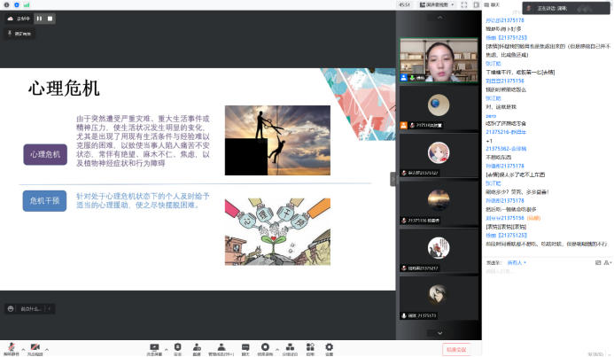 讨论结束后,陈老师从专业的角度解读了同学们出现心理状况波动的原因,并将疫情的常态化趋势概括为“非正常事件”。陈老师带领同学们对比了正常反应与心理适应不良的不同表现,并通过自我压力评估的测试互动环节让同学们对应激与压力的概念有了更好的理解,同时,呼吁同学们运用合理的方式解压,防止对自己和他人造成更大的伤害。