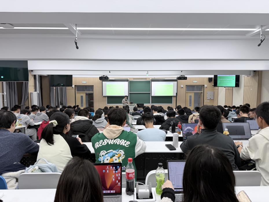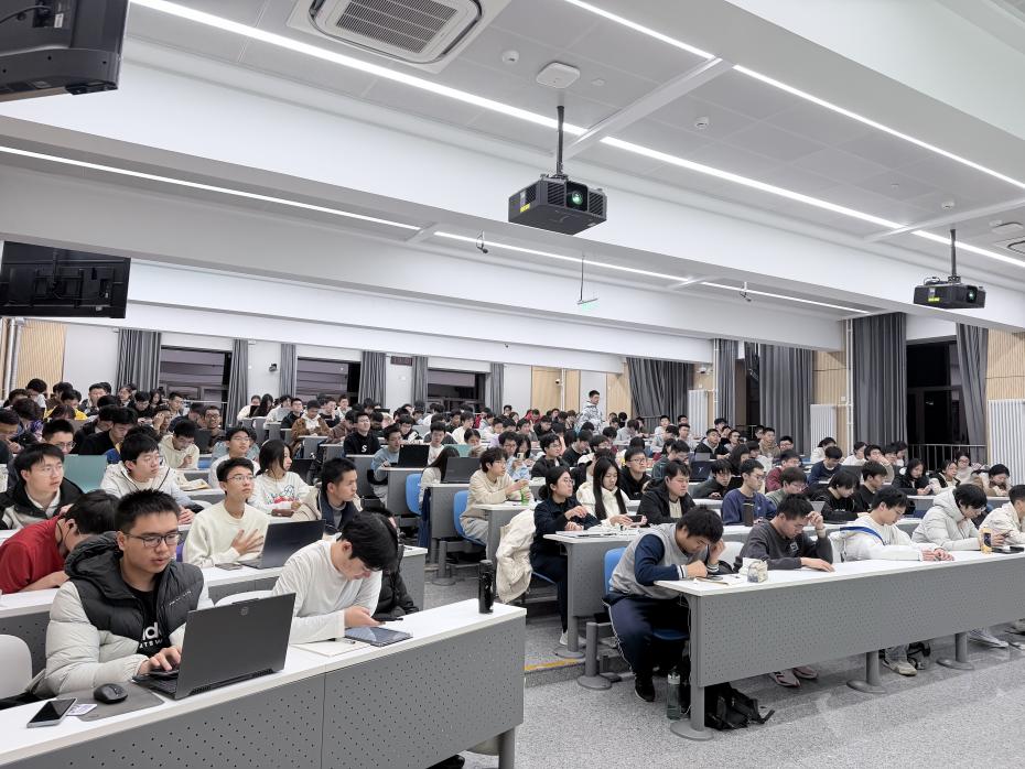 在互动交流环节,同学们围绕学习方法、考试策略与AI工具使用等问题踊跃提问,陈琦一一予以细致解答。现场气氛活跃,思维碰撞频繁,展现了师生共探语言学习新路径的良好氛围。
