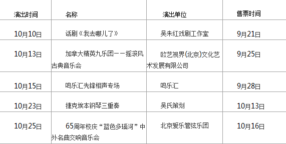 北航音乐厅10月演出预告