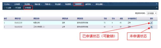 2、如课程有补考环节,一门课程最多只有一次补考机会,请同学们慎重申请。